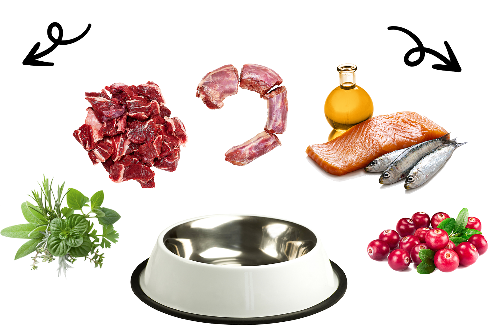 natuurlijk en biologisch, vers en gedroogd vlees, kruiden en geen kunstmatige toevoegingen