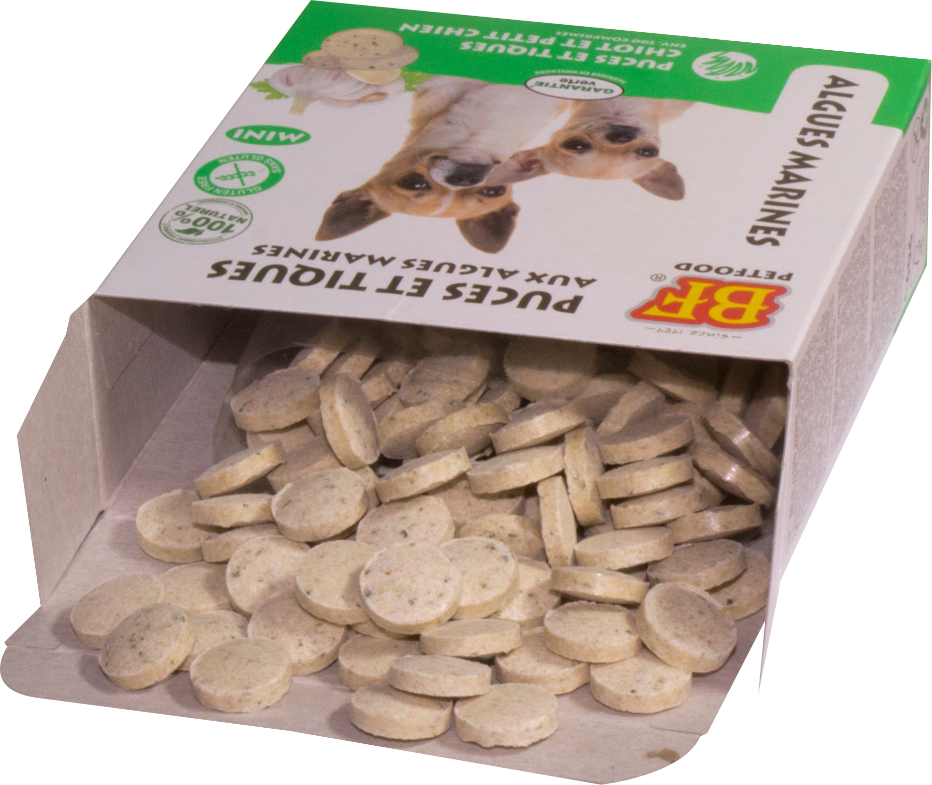 - smaakvolle koudgeperste gisttabletten met knoflook en zeewier.