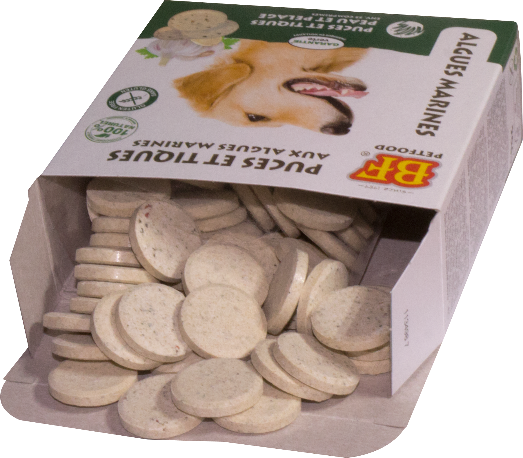 - smaakvolle koudgeperste gisttabletten met knoflook en zeewier.