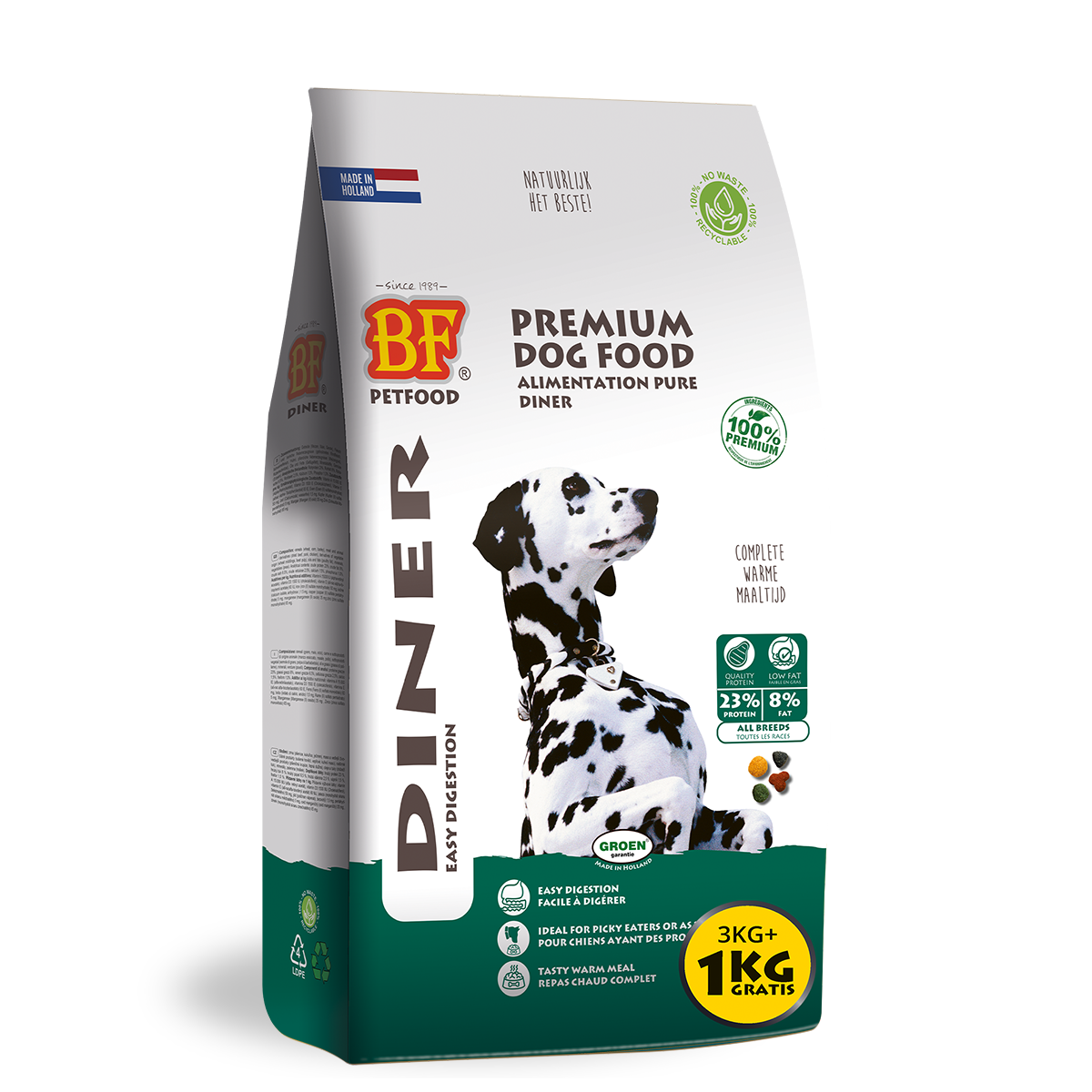 BF®Petfood is the first pet food company in the Netherlands and the BeNeLux to introduce new, sustainable, recyclable, No Waste packaging for dog and cat food?
